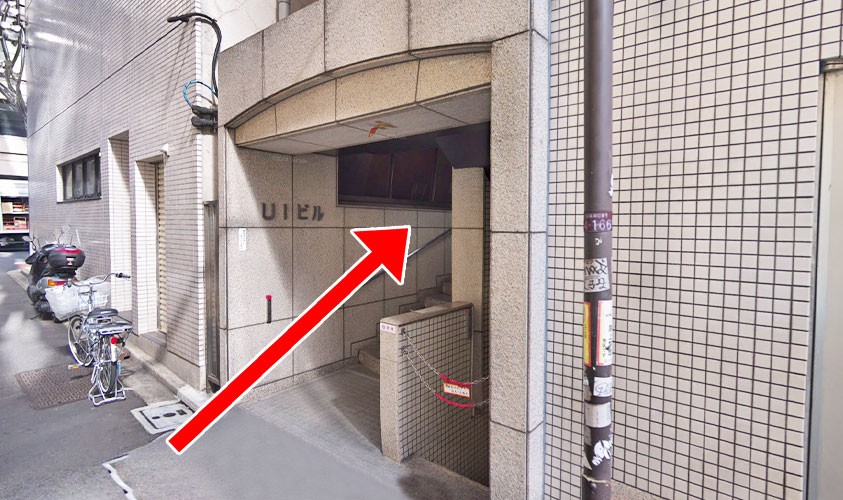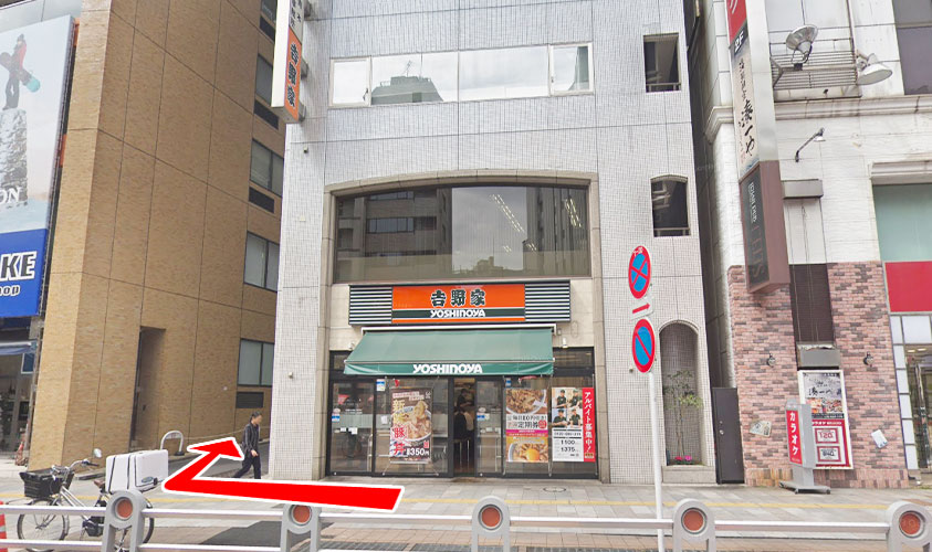 吉野家に向かってビル左側にビルの入り口があります。